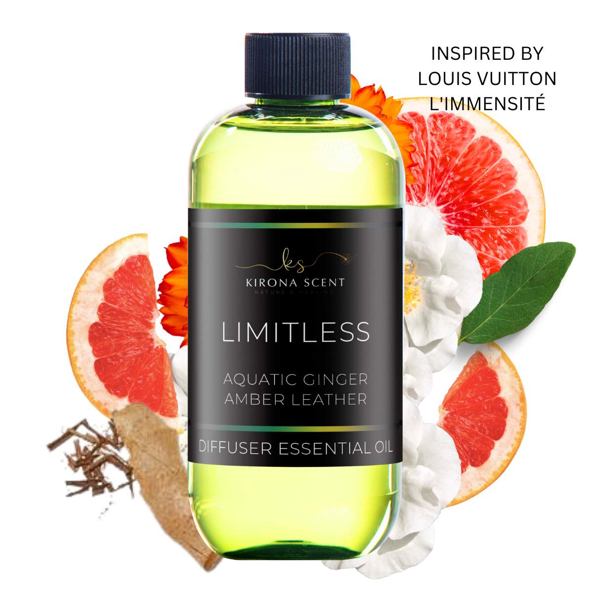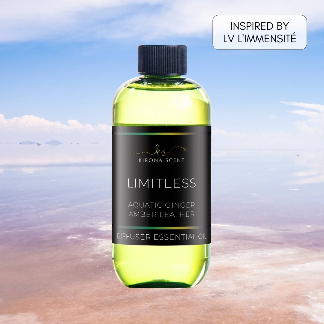 Introducing Limitless Essential Oil! Wrap yourself in the timeless scent inspired by Louis Vuitton L'Immensité with our new essential oil that’s sure to make you feel like royalty. Our own unique formulation brings to life the most beloved components from this well-known fragrance and embroils them together in a tantalizing set of notes.
