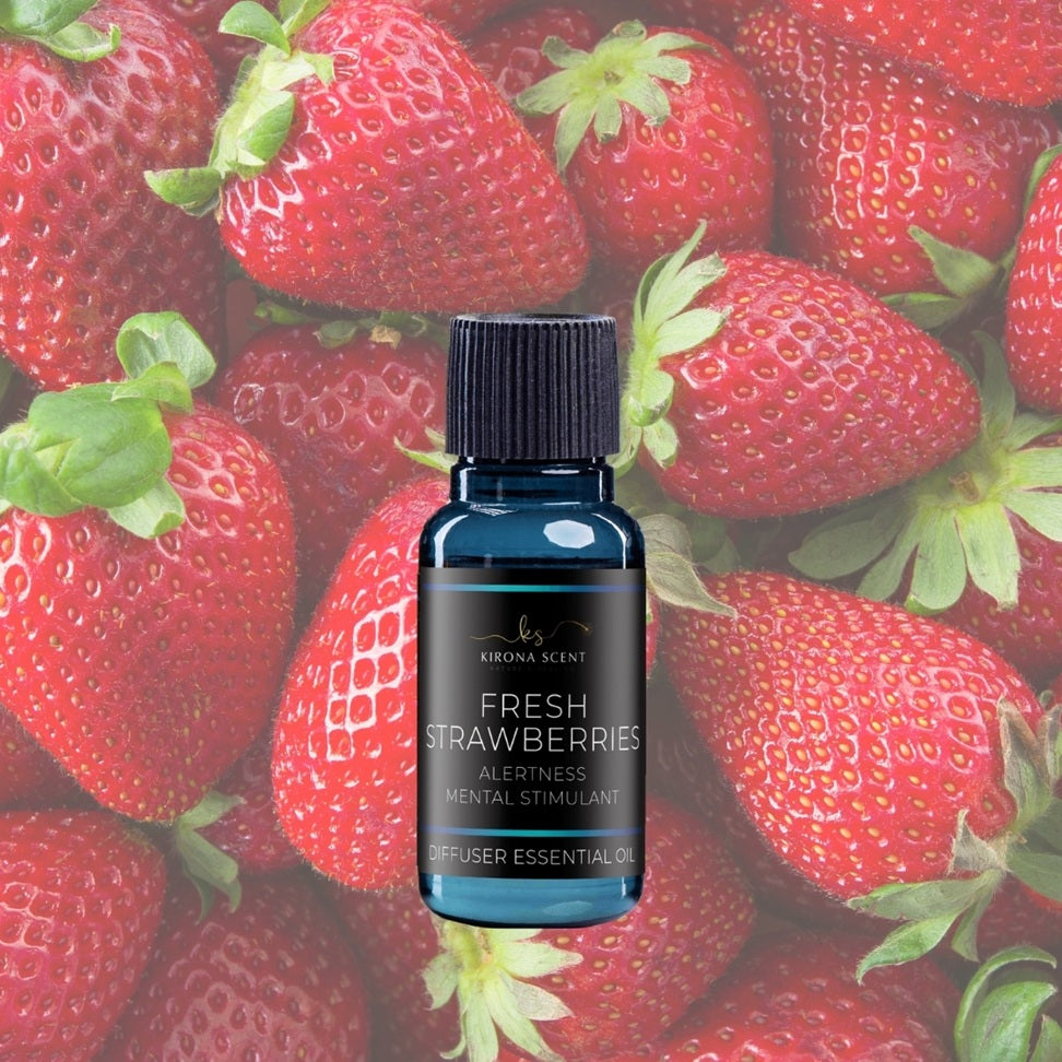 Fresh strawberries essential oil is the perfect mood enhancer! With its sweet and uplifting scent, it is sure to bring a smile to your face and put you in a better frame of mind. Not only does this fresh scent make you feel happier, it has also been known to act as a mental stimulant - it helps to keep your mind alert for extended periods of time and can help with concentration. Try Kirona Scent's Fresh Strawberries essential oil today, and bask in the sweet and fruity scents that are sure to brighten up your mood!